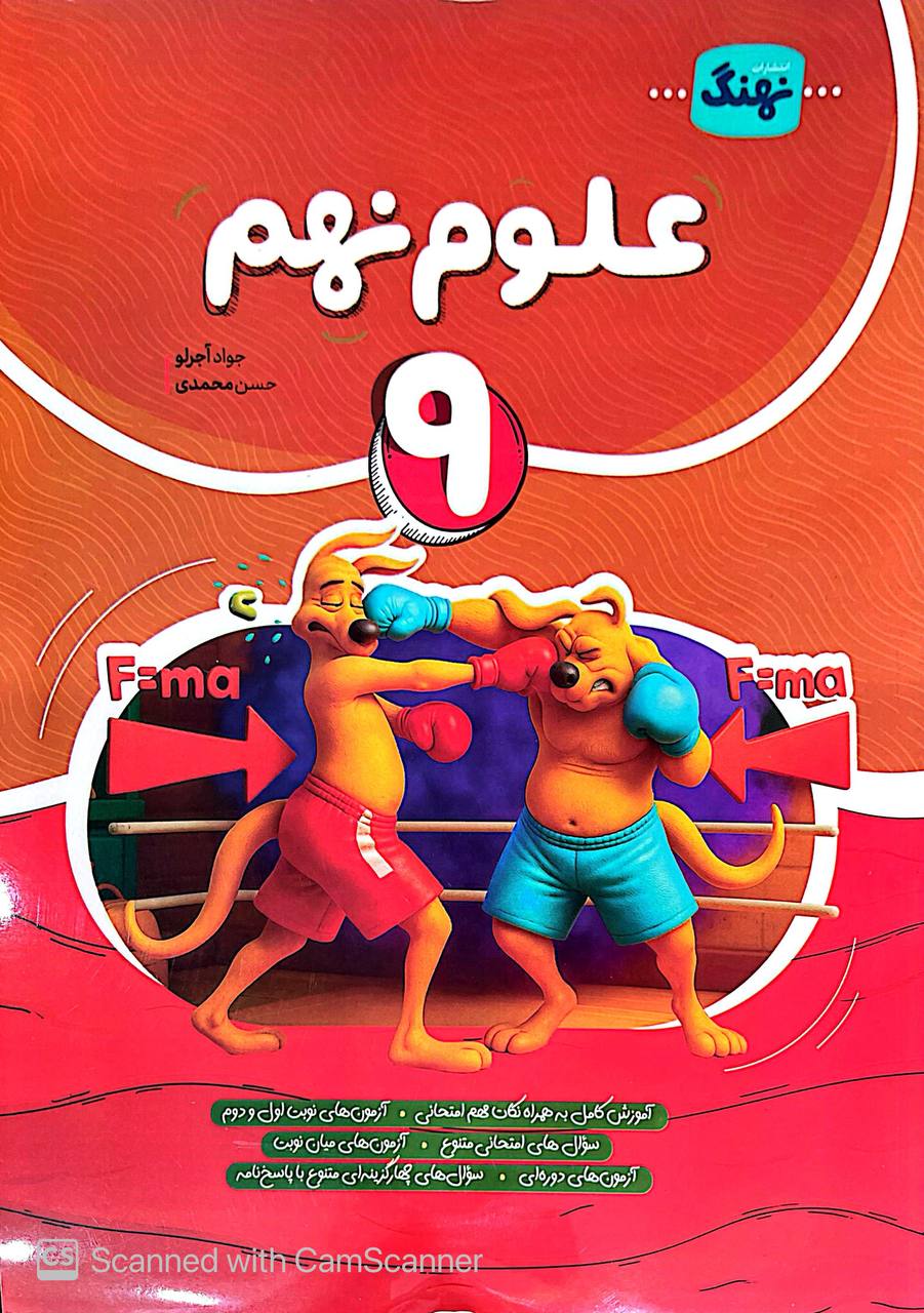 کتاب علوم نهم توسط انتشارات نهنگ و تألیف جواد آجرلو و حسن محمدی در ۳۲۶ صفحه منتشر شده است.